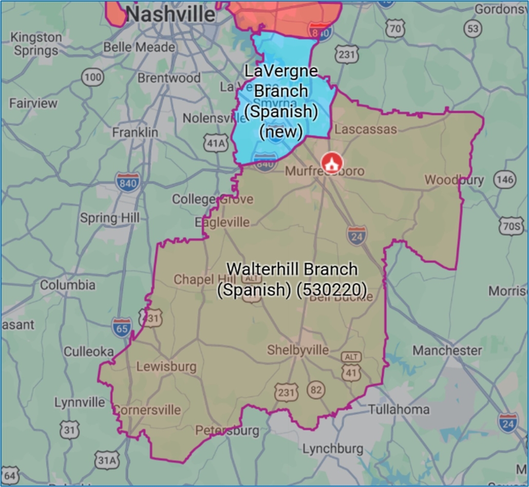 Esta unidad mantendrá los mismos límites que la anterior Rama Stones River 2nd, excepto que el límite norte ha cambiado debido a la creación de la nueva Rama Hispana de LaVergne.